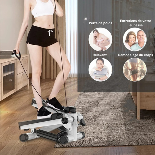 Brûlez un maximum de calories en seulement 15 minutes par jour ! Le mouvement naturel de stepper cible efficacement les mollets, les cuisses, les fessiers, ainsi que le ventre, les bras et les épaules.