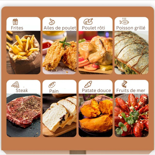 - Utilisation : Friteuse à air, four, micro-ondes, cuiseur vapeur