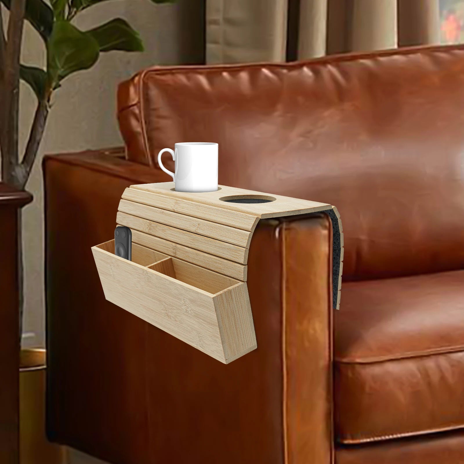 Que vous ayez un canapé en tissu ou en cuir, avec des accoudoirs larges ou standards, ce plateau s'adapte parfaitement grâce à sa structure flexible et pliable.