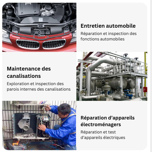 Sa lentille ultra-mince de 8mm permet d'explorer des espaces exigus avec une grande facilité. Adapté à plusieurs domaines : automobile, plomberie, maintenance industrielle, équipements électroniques et bien plus encore !