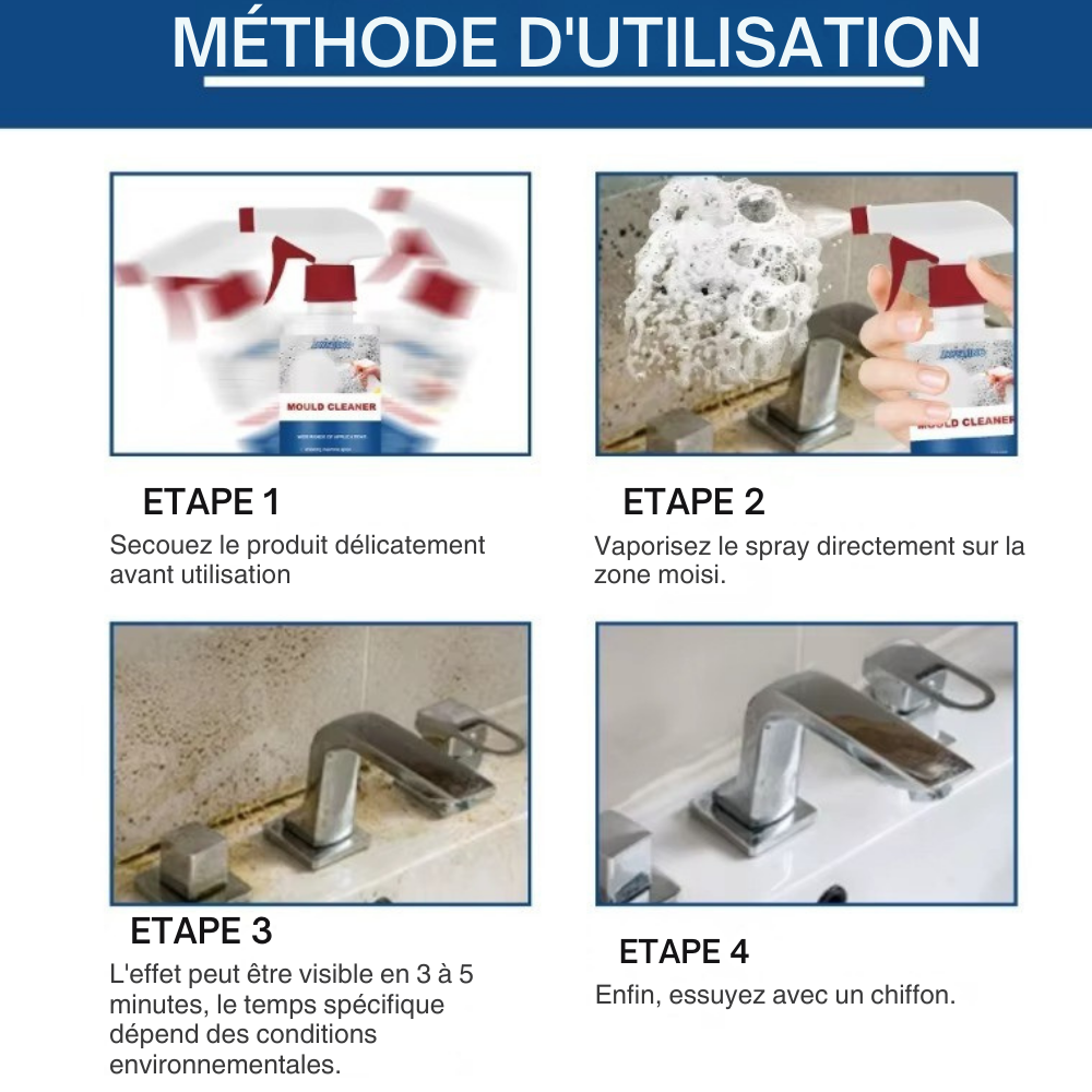 Les résultats sont visibles dès la première application, avec une réduction significative des moisissures en 3 à 5 minutes.