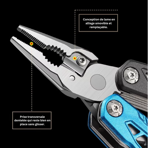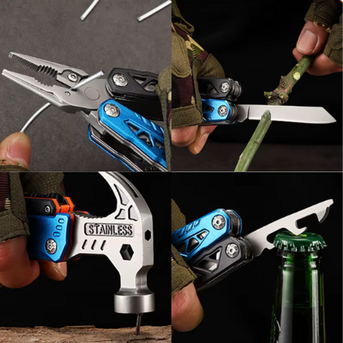 Avec ses 18 fonctions intégrées, cet outil multitâche remplace une boîte à outils entière. Clé à molette, marteau, tournevis, couteau, scie et bien plus encore : il est parfait pour les bricoleurs comme pour les aventuriers.