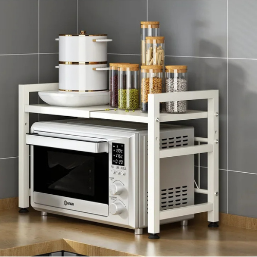Sa conception extensible (de 42 à 64 cm) permet d’ajuster la largeur selon la taille de votre micro-ondes ou de vos autres appareils. Parfait pour organiser épices, assiettes, casseroles et accessoires de cuisine en toute simplicité.