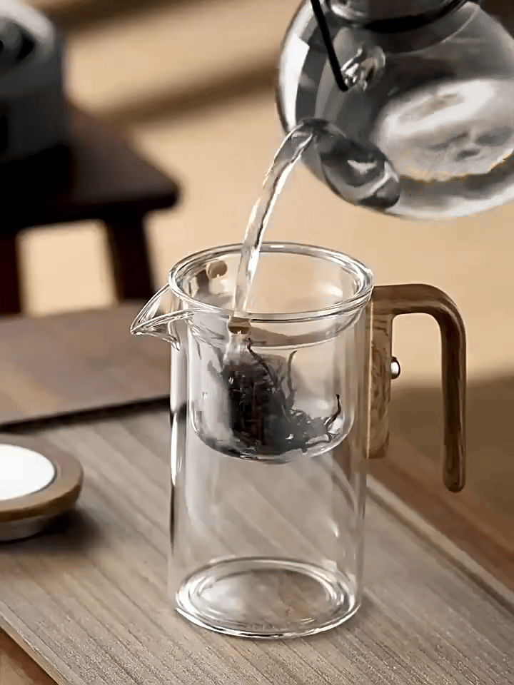 Observez le mouvement des feuilles et les teintes changeantes de votre infusion à travers le verre clair. C’est bien plus qu’un thé : c’est un moment de contemplation et de sérénité dans un monde mouvementé.