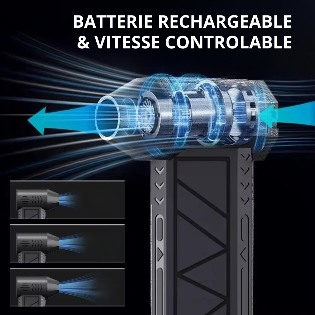 Avec un moteur sans balais ultra-rapide atteignant 140 000 tr/min, ce ventilateur génère un débit d’air impressionnant de 53 m/s. Que ce soit pour enlever la poussière des coins difficiles d’accès ou nettoyer vos appareils électroniques, il offre une efficacité redoutable.